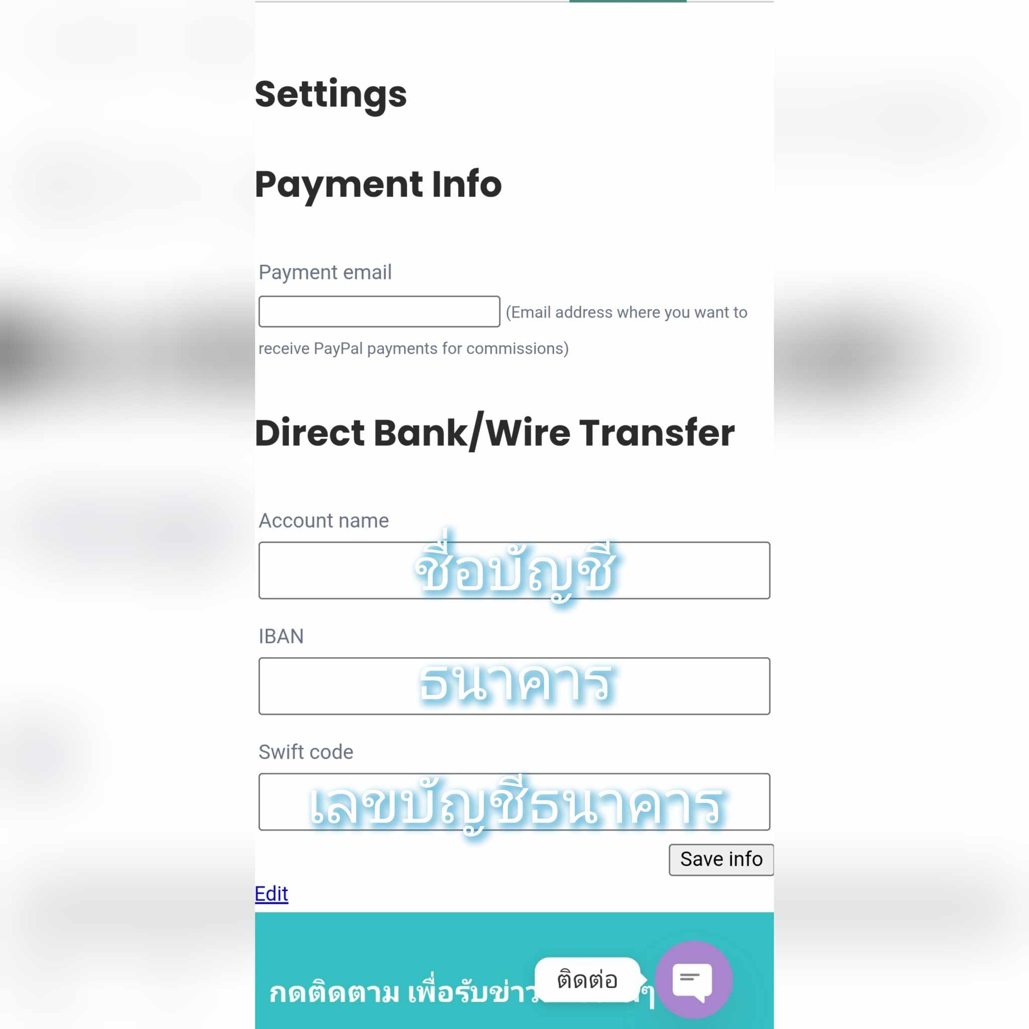 - เมื่อมีรายได้เกินขั้นต่ำในการถอน 100 บาทแล้วสามารถตั้งค่าถอนเงินได้ตามภาพ